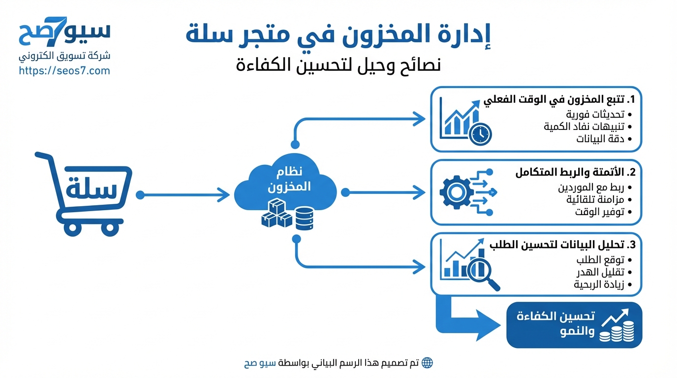 - الأتمتة هي الأساس: لا تعتمد على الجرد اليدوي. استخدم تطبيقات سلة لربط المخزون وتحديث الكميات تلقائياً.
