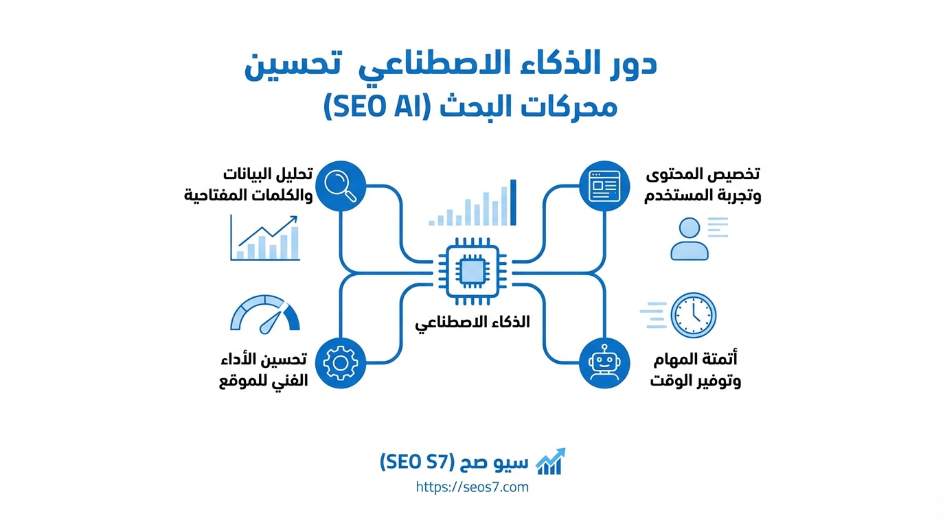- السيو التقني المؤتمت: تستخدم الأدوات الآن AI لتحليل سجلات الخادم، تحسين سرعة الموقع، وتوليد الـ Schema Markup تلقائياً. هذا يقلل وقت التدقيق اليدوي.